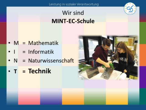Wir sind MINT-EC-Schule • M = Mathematik • I = Informatik • N = Naturwissenschaft • T = Technik