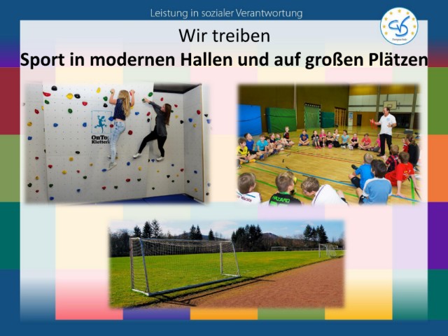 Wir treiben Sport in modernen Hallen und auf großen Plätzen