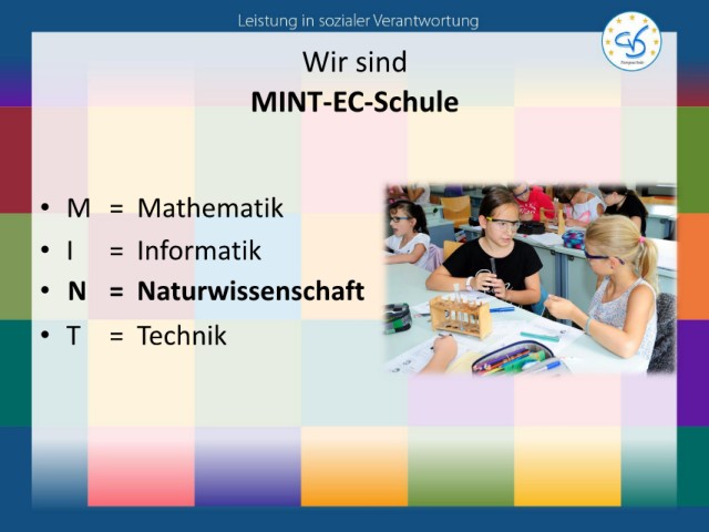 Wir sind MINT-EC-Schule • M = Mathematik • I = Informatik • N = Naturwissenschaft • T = Technik