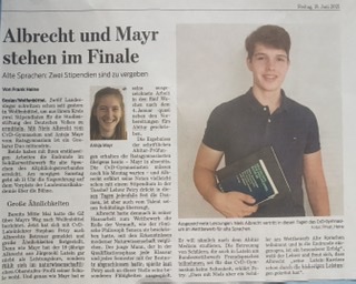 Im Rerum Antiquarum Certamen, dem Landeswettbewerb der Alten Sprachen, konnte das CvD in diesem Jahr mit Niels Albrecht einen besonders starken Schüler an den Start schicken. In der ersten Runde war eine sehr anspruchsvolle Klausur über den Geschichtsschreiber Tacitus zu bewältigen. Nach einer sehr guten Leistung stand Runde zwei an: eine Hausarbeit, für die sich Niels mit Erkenntnissen Senecas im Vergleich zur modernen Hirnforschung auseinandersetzte. Durch diese ebenfalls (eigentlich mehr als) sehr gute Arbeit wurde Niels als einer von zwölf Landessiegern nach Wolfenbüttel eingelagen, wo jeweils sechs Mädchen und Jungen zwei Tage lang gefordert waren, sich in mehreren Aufgaben und Vorträgen der Jury zu stellen. > > Bei der Preisverleihung am Sonntag konnte Niels erneut mit einem Kurzvortrag glänzen. Für Fachlehrer Stephan Petry und Fachobfrau Alexandra Janitzki war Niels ganz klar der Favorit. Auch wenn das ausgeschriebene Stipendium letztlich an den Teilnehmer aus Göttingen ging, sind beide stellvertretend für die gesamte Schulgemeinde des CvD sehr stolz auf ihren Schützling und bescheinigen ihm von Anfang an seiner Lateinkarriere (in der 6. bis 8. Klasse sowie dem Eingang in die Oberstufe in Klasse 11 unter Janitzki sowie im Prüfungskurs in der Qualifikationsstufe unter Petry) außergewöhnliche Fähigkeiten, die Niels letztlich in allen Fächern zeigte und ihn auch u.a. das schriftliche Prüfungsfach Latein mit der Bestnote abschließen ließen.
