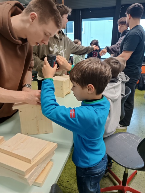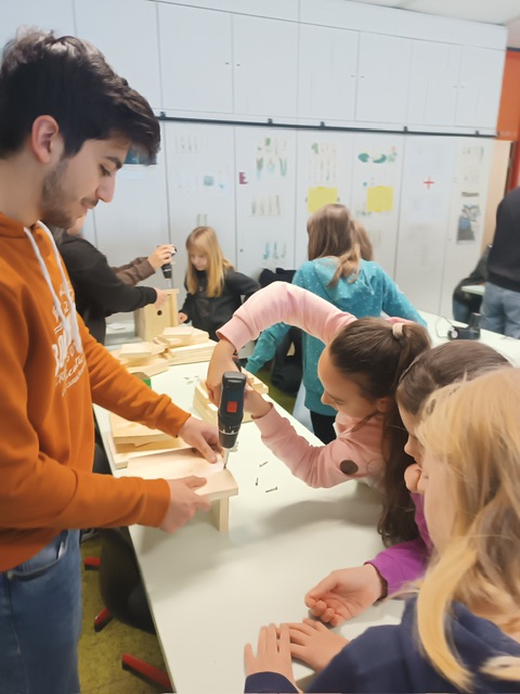 Aus vorgefertigten Bausätzen haben die Grundschulkinder unter Anleitung der „Großen“