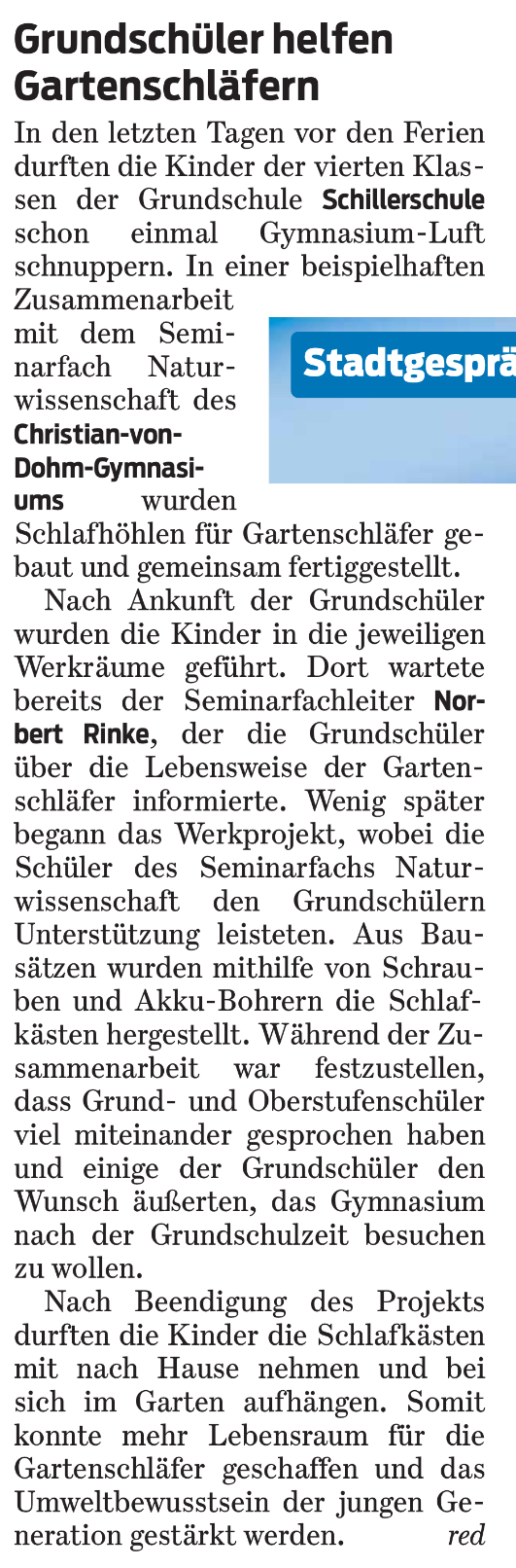 Angeregt durch ein Gartenschläfer-Projekt des BUND haben sich die Teilnehmenden des