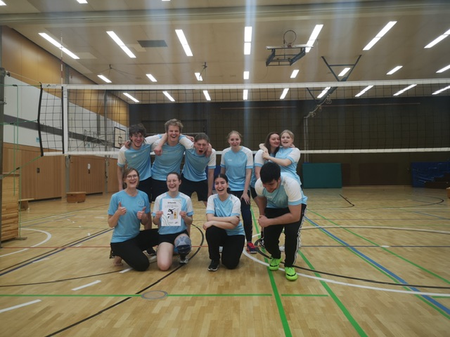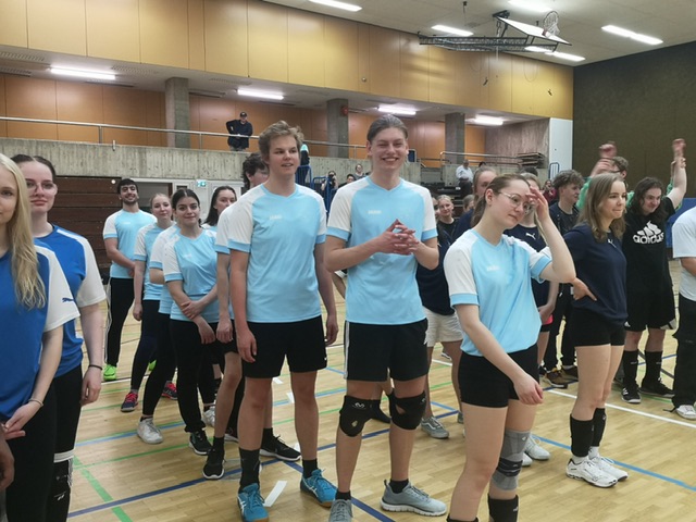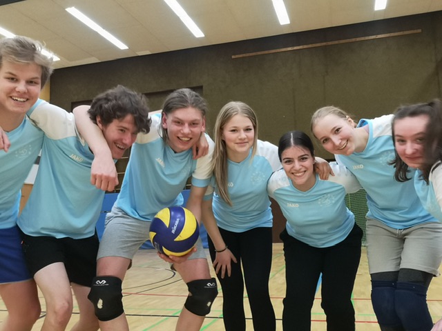Mit einem erfolgreichen Schlussspiel gegen das Team des Werner-von-Siemens-Gymnasiums endete der letzte Spieltag des ersten WvS-Volleyball-Cups für die 9 Schülerinnen und Schüler des CvD. Die Mixed-Mannschaft hatte sich an den ersten beiden Spieltagen den starken Teams des NIG und der RKS geschlagen geben müssen. Dies änderte jedoch nichts an der guten Laune, einem durchgehend fairen Spiel und dem Willen, das Beste aus sich und der Mannschaft herauszuholen. Mit vielen Tipps und gegenseitigen Anfeuerungsrufen wuchsen die Jugendlichen aus vier Jahrgängen des CvD über sich selbst hinaus. Emily und Finja brachten durch ihre rouinierte und sichere Spielweise viel Ruhe in das Team. Mats, Nils und Nicolas überraschten immer wieder durch ihre Aktionen am Netz in Angriff und Abwehr. Hanna ließ den gegnerischen Teams durch schlagkräftige Angaben kaum Chance ins Spiel zu finden und Mirella, Lina und Victoria entwickelten ihre Spielfähigkeit mit riesigen Fortschritten weiter. Es war eine Freude zu beobachten, wie sich die Kontakte der Teilnehmenden innerhalb der Jahrgänge 10-13 des CvD intensivierten und sich durch den Modus des Cups ein reger Austausch auch zwischen den vier Schulen ergab. Ein großer Dank gilt allen Schiedsrichtern sowie Organisatoren, die sich ehrenamtlich für den Volleyballsport engagiert haben sowie dem zahlreich erschienenen Publikum, welches die wirklich spannenden und knappen Spiele in der Halle des CvD mit viel Applaus und positiver Stimmung untermalte.